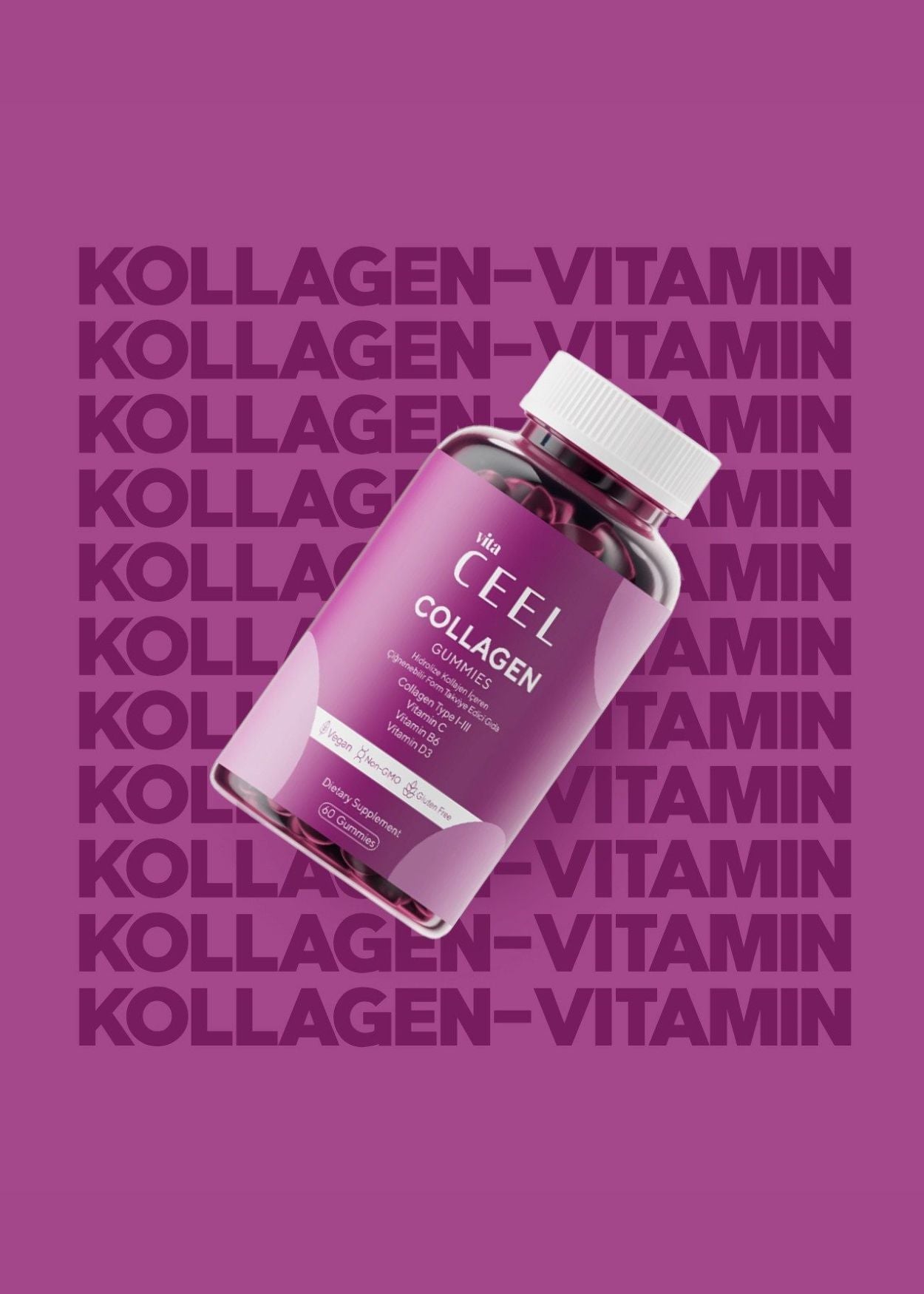 - With hydrolyzed collagen type I–III, vitamin C, B6 and D3